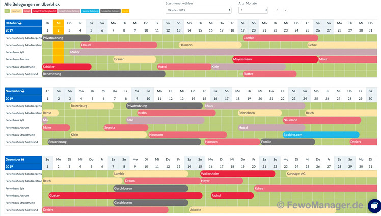- Buchungskalender mit Mietübersicht