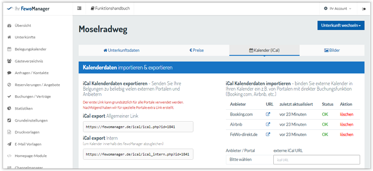 - Automatische Synchronisierung der Belegung in Buchungsportalen
